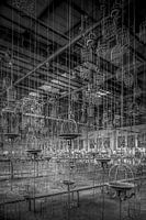 Een kleedruimte voor mijnwerkers in een verlaten mijngebouw in het Ruhrgebied in Duitsland. Na jaren van leegstand, koperdiefstal en vandalisme wordt het nu eindelijk behouden en gedeeltelijk als museum ingericht.