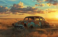 Verlaten auto in het avondlicht