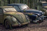 Op dit autokerkhof staan vele verlaten en vervallen auto's, waaronder een Volkswagen Kever. De natuur neemt het langzaam weer over