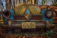 Deze ooit een prachtige auto uit de vijftiger jaren staat verlaten in een bos.