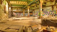 In een verlaten steenkoolmijn ligt deze hal verlaten en vol grafitti te wachten op me.