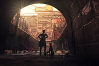 De 3d render techniek geeft het beeld een gevoel van realisme, waardoor de kijker zich kan inleven in de emoties van de personages. De gebouwen zijn vervallen en de lucht is mistig, wat een gevoel geeft van een wereld die in verval is.