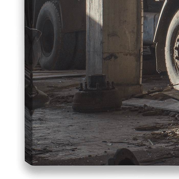In deze verlaten garage staat het nog vol met inmiddels antieke auto's en vrachtwagens. Deze auto's hebben al heel wat jaren geen daglicht meer gezien.