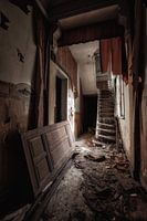 Verlaten hal in een huis in Belgie. Het huis was al jaren oud en is door de oude bewonders plotseling verlaten achter gelaten. De oude trap is nauwelijks meer te gebruiken in het verlaten huis. En waarom hebben ze de deur eruit gehaald? En welk verhaal heeft zich hier afgespeeld? Een mysterieuse foto voor bij jou aan de muur. Koop nu…