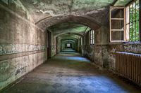 Een keldergang in een vervallen Italiaans ziekenhuiscomplex
