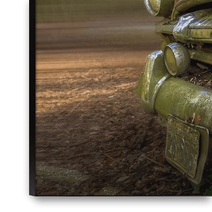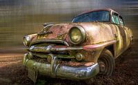 Een 'snelle" oldtimer in een Duits bos. Een Duitse verzamelaar kocht op zijn 50e verjaardag 50 auto's uit 1950, stalde deze in een bos achter zijn woning en laat ze over aan de krachten van de natuur.