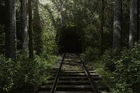 Koop dit landschapskunstwerk Verlaten natuurlijke tunnel met sporen bedekt met mos en omringd door struiken van Besa Art als print op canvas, aluminium dibond, (ingelijste) fotoprint, behang en ArtFrame. Voor jou op maat geprint in Fine-Art kwaliteit.