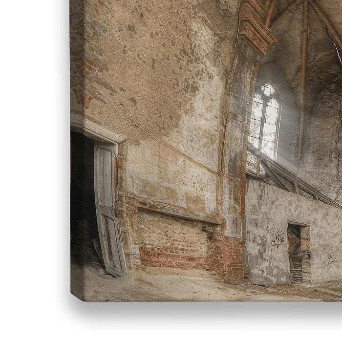 Koop dit moderne kunstwerk Verlaten plaats - oude kerk van Carina Buchspies op canvas, aluminium dibond, (ingelijste) fotoprint, behang en ArtFrame, op maat geprint in Fine-Art kwaliteit.
