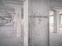 Verlaten plekken: Sphinx fabriek Maastricht Eiffelgebouw 5e verdieping detail. van OK-ART
