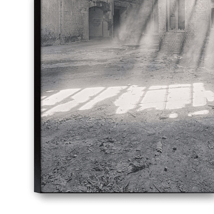 Koop dit stilleven Verlaten plekken: Sphinx fabriek Maastricht lichtstralen van OK-ART op canvas, aluminium dibond, (ingelijste) fotoprint, behang en ArtFrame, op maat geprint in Fine-Art kwaliteit.