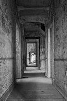 Koop de foto Verlaten plekken | Urbex Gang / Hal in wart wit van Steven Dijkshoorn op canvas, aluminium dibond, (ingelijste) fotoprint, behang en ArtFrame, op maat geprint in Fine-Art kwaliteit.