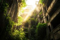 Koop de foto Verlaten ruïne met zonnestralen van Poster Art Shop op canvas, aluminium dibond, (ingelijste) fotoprint, behang en ArtFrame, op maat geprint in Fine-Art kwaliteit.