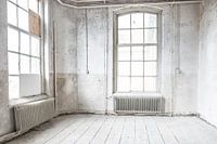 Verlaten school gebouw interieur met beschadigde vloeren en muren lichtval door de ramen. Het gebouw is leeg even verlaten.