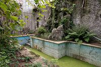 Ergens op een groot domein bevindt zich deze serre met tropisch decor en een klein zwembad. Inmiddels wordt het door de natuur overgenomen.