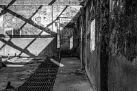 Een verlaten stal met zonnesporen op zijn muren