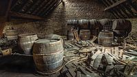 Lege vaten op de zolder Van de verlaten brouwerij Eylenbosch in België. Na jaren van leegstand is het gebouw gerenoveerd en omgebouwd tot een appartementencomplex.