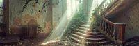 "Faded Splendour" is een indrukwekkend kunstwerk dat de sublieme schoonheid vastlegt van een verlaten villa waarvan de vroegere elegantie is verzacht door de sporen van de tijd. Lichtstralen breken door het gebroken plafond en verlichten de afbrokkelende trap en de stoffige, vergulde zuilen. Dit beeld verleent een bijna heilige…