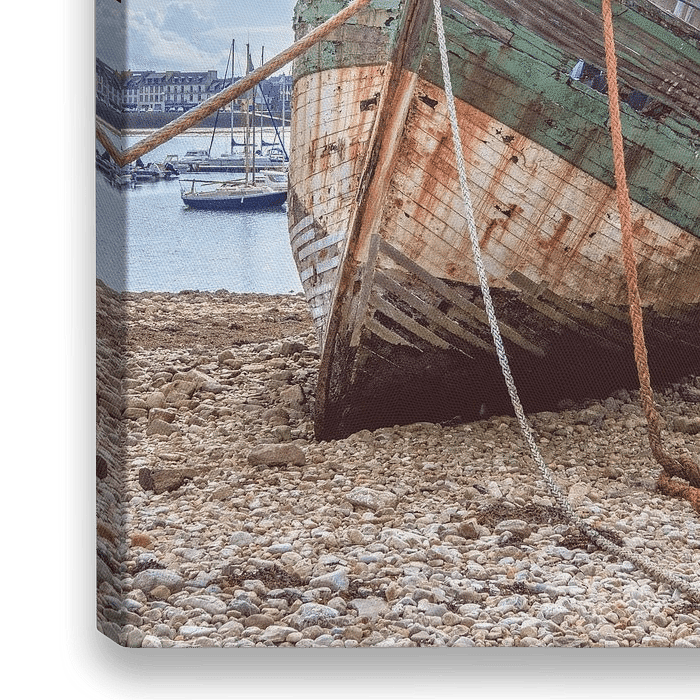 Bretagne heeft langs de kust vele vissersplaatsen. Er zijn op verschillende plekken scheepskerkhoven ingericht waar de oude houten vissersbootjes letterlijk liggen weg te rotten. OP een enkele plek wordt een gepensioneerde boot zomaar op het strand achtergelaten. Niemand die er zich om bekommert. Maar mooie plaatjes levert het wel op.