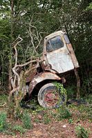 Deze vrachtwagen ligt diep in een bebost gebied in Frankrijk.