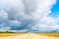 Verlaten zandweg in de Champagnestreek van Frankrijk met in de achtergrond wijn plantages