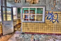 Verlaten kantoortje in het vervallen station van Montzen in België. Het station staat al jaren te wachten tot het in elkaar zakt. Het is een HDR (High Dynamic Range) foto samengesteld uit 5 foto's waarna tone mapping is toegepast.