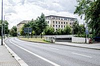 Een verlaten gebouw in de binnenstad van een kleine Duitse stad.
