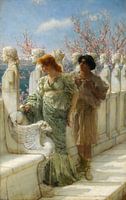 Sir Lawrence Alma-Tadema was een Nederlandse schilder met een bijzondere Britse nationaliteit. Geboren in Dronrijp, Nederland, en opgeleid aan de Koninklijke Academie van Antwerpen, België, vestigde hij zich in 1870 in Engeland en bracht daar de rest van zijn leven door. Als schilder van klassieke onderwerpen werd hij beroemd om zijn afbeeldingen van de luxe en decadentie van het Romeinse Rijk, met smachtende figuren in fabelachtige marmeren interieurs of tegen een achtergrond van oogverblindend blauwe Middellandse Zee en lucht. Alma-Tadema werd beschouwd als een van de meest populaire Victoriaanse schilders.