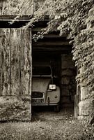 Het Frankrijk / Dordogne waar ik van hou, een schitterende oude auto in een schuur die wel eens betere tijden heeft gezien, heerlijk.