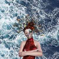 Surrealistische voorstelling van een jonge vrouw.