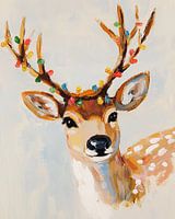 Details: Kerstmis schilderij, rendier, kerstverlichting, dieren schilderij, feestdagen kunst, winter kunst, gewei, kerstsfeer, cadeau idee, december decoratie