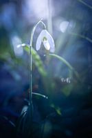 Dit sneeuwklokje stond enigszins verstopt in het bos, het licht viel er maar net op. Slechts één bloemblaadje was een beetje verlicht.