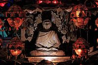Verlicht Boedhabeeld bij de tempel in Kataragama, Sri Lanka