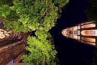 Verlichte Domtoren en Domkerk van onderen gezien van Anton de Zeeuw