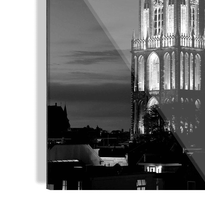 Koop de foto Verlichte Domtoren tijdens de start van de Tour de France 2015, ZWART-WIT van Donker Utrecht op canvas, aluminium dibond, (ingelijste) fotoprint, behang en ArtFrame, op maat geprint in Fine-Art kwaliteit.