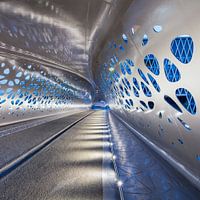 Koop dit abstracte kunstwerk Verlichte Parkbrug bij nacht, Antwerpen van Tony Vingerhoets op canvas, aluminium dibond, (ingelijste) fotoprint, behang en ArtFrame, op maat geprint in Fine-Art kwaliteit.