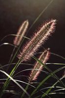 De prachtige bloemaren van siergras Pennisetum alopecuroides, verlicht door de ochtendzon, van dichtbij. Dit gras, ook bekend als fonteingras, Lampenpoetsersgras of Chinese pennisetum, is een populaire tuinplant.