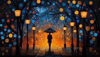 Verlichte bos wandelende man panorama schilderij dat een prachtige aanvulling zal zijn in elke kamer. Met zijn unieke en stijlvolle uitstraling trekt het direct de aandacht. De schitterende kleuren en het bijzondere ontwerp maken dit kunstwerk 100% uniek en origineel. Het is de perfecte fotoprint om je interieur helemaal compleet te maken.