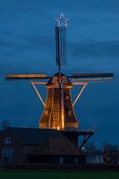 Verlichte Venemansmolen in Winterswijk met kerstster
