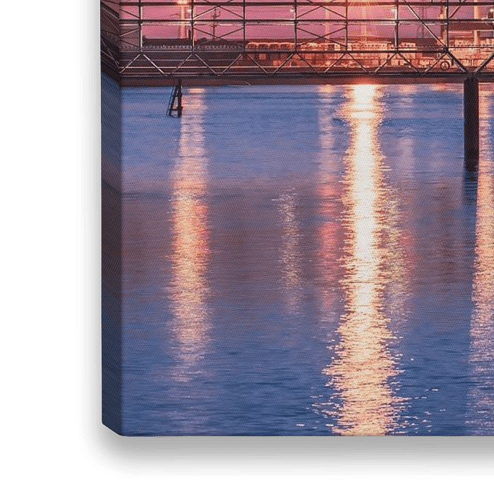 Koop de foto Verlichte pier bij een kleurrijke zonsondergang, Haven van Antwerpen 3 van Tony Vingerhoets op canvas, aluminium dibond, (ingelijste) fotoprint, behang en ArtFrame, op maat geprint in Fine-Art kwaliteit.