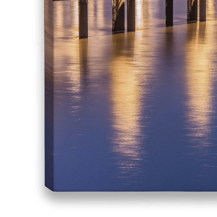 Koop de foto Verlichte pier tijdens blauw twilight_1 van Tony Vingerhoets op canvas, aluminium dibond, (ingelijste) fotoprint, behang en ArtFrame, op maat geprint in Fine-Art kwaliteit.