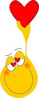 Lustiges Gesicht ist verliebt und hält Herz in der Hand