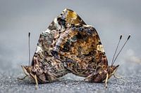 Twee parende atalanta vlinders. Zijn ze niet prachtig, zelfs met hun vleugels dicht? Een bijzonder detail zijn de kleine hartjes die te zijn zijn op de vleugels!