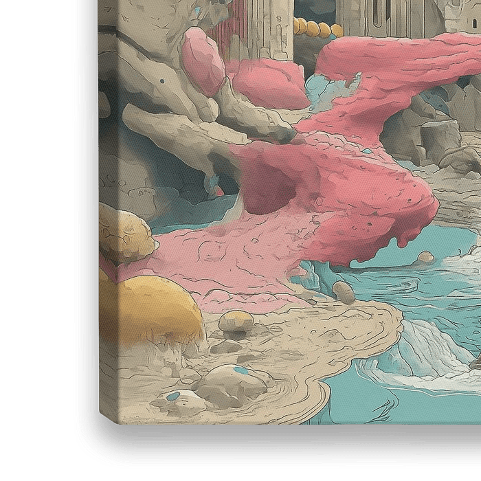 De "Verloren Stad van Flora" nodigt uit tot een ontdekkingstocht door een vervallen beschaving waar de natuur op een wonderbaarlijke wijze heeft teruggenomen wat eens door mensenhanden is gemaakt. Deze illustratie vermengt de ruïnes van een vergeten stad met levendige organische structuren die doen denken aan gigantische paddenstoelen…