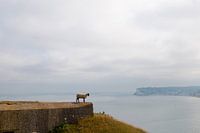 De denker, Frankrijk, schaap, verloren, eenzaamheid, natuur, zee, zeezicht, denker, rotsen , kustlijn, kust, water, dieren, rust, natuurbeeld