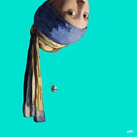 Moderne popart versie van een oude meester, met een knipoog. Een nieuwe kijk op Vermeer door Miauw.