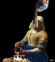 Vermeer zusjes popart Meisje met de Parel, Melkmeisje - zwart van Miauw webshop