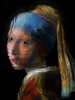 Johannes Vemeer. Het meisje leeft. Een creatieve vage versie achter glas.