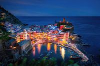 Een van de vijf dorpen van de Cinque Terre aan de Ligurische kust van Italië in prachtig avondlicht.