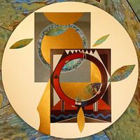 Een paar dagen geleden bood zich zomaar een abstracte collage aan in de uitknipsels die overschoten van een cirkelboekje uit goudpapier. Dat heeft uiteindelijk geresulteerd in deze collage: Verrast door Goud.