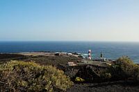 Dit is het zuidelijkste puntje van het Canarische Eiland La Palma. La Palma is een erg vulkanisch eiland, waardoor het zand donker, bijna zwart, is. Je ziet twee vuurtorens, de grijze is de oude en de rood/witte de nieuwe vuurtoren. Links naast de vuurtorens zie je de zoutvelden van La Palma.